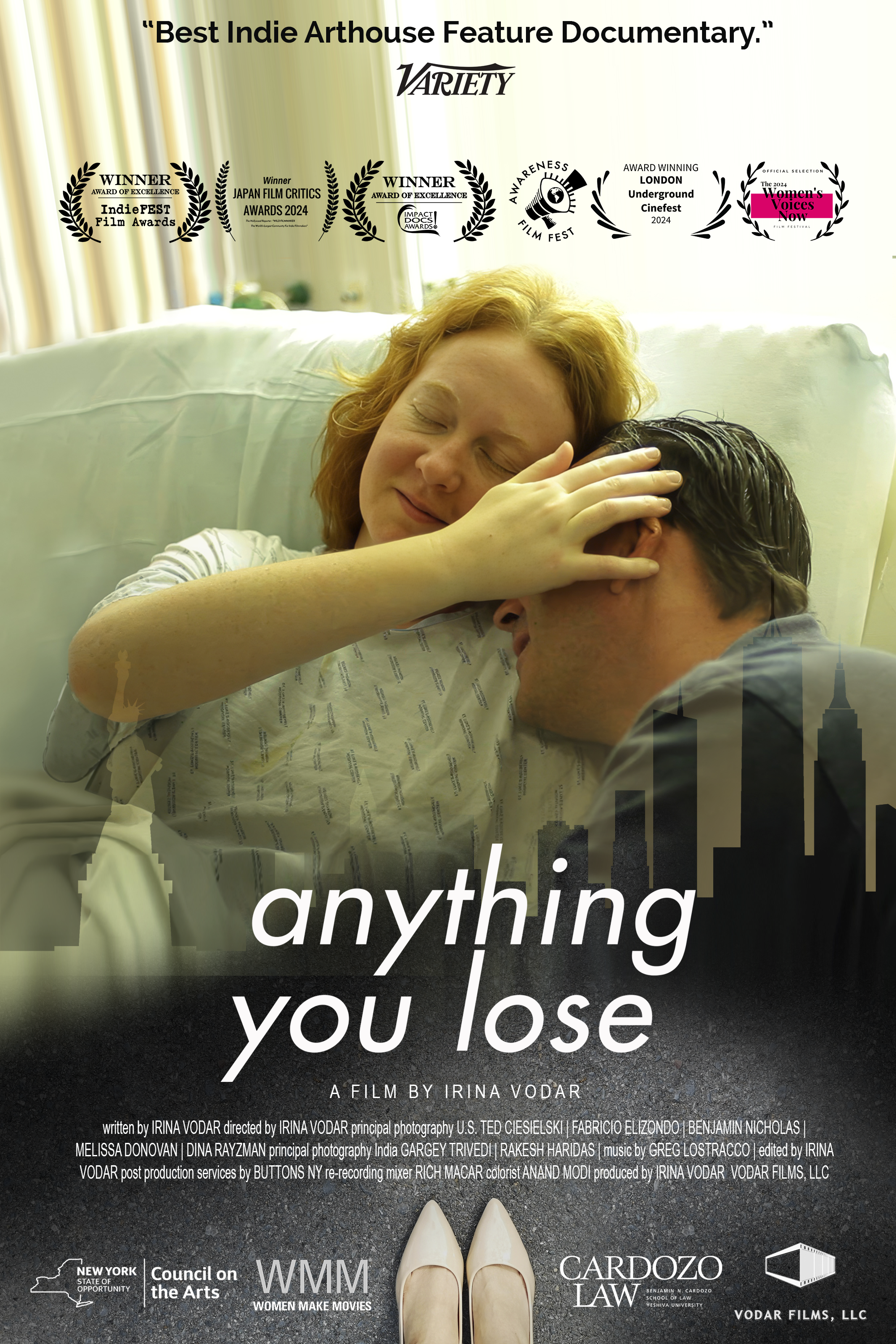 Her second documentary Anything You Lose, an insightful portrayal of infertility journey, won funding from the New York State Council on the Arts (NYSCA) and went viral on the Indie Film Festival circuit with a 3X WIN at IndieFest Film Awards, garnering over 100 awards and nominations globally.